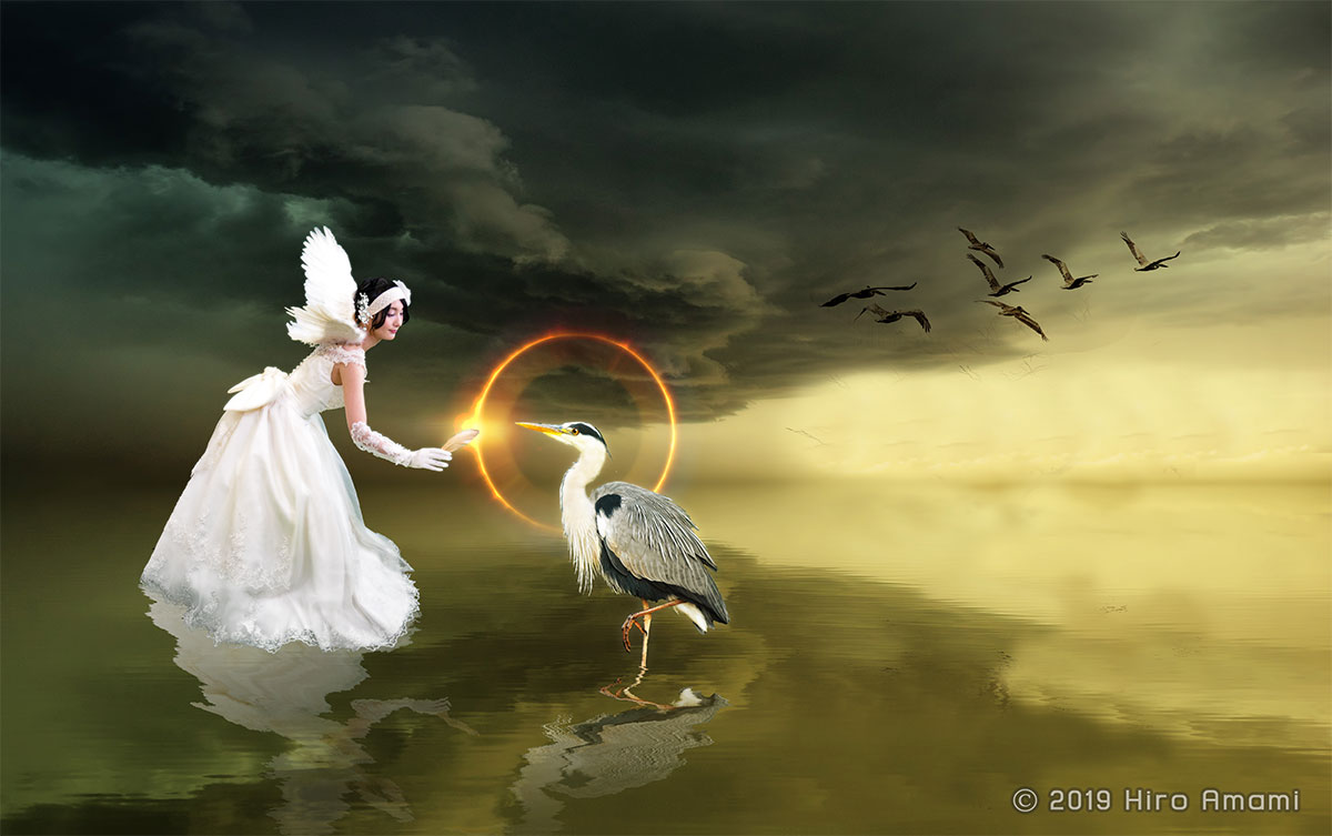 その輝きが増すにつれ、言葉にならない言葉がアオサギから響きます。